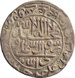 لا اله الا الله محمد رسول الله علي ولي الله, Arabic inscription in field, enclosed by plain circle, enclosed by Arabic inscription anti-clockwise in margin, all enclosed by plain and pointillate circles