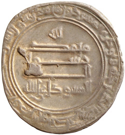 لله / محمد / رسول / الله / المتوكل على الله, Arabic inscription in field, enclosed by two linear circles, enclosed by Arabic inscription (Sura 9:33) anti-clockwise in margin from 12h, all enclosed by linear circle