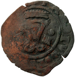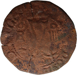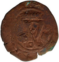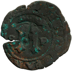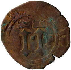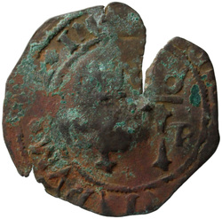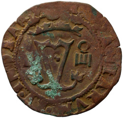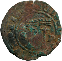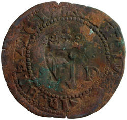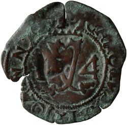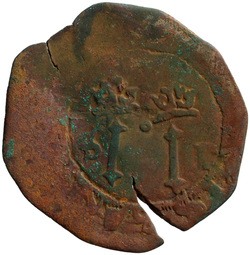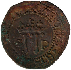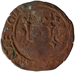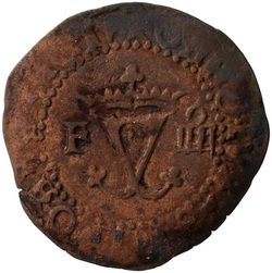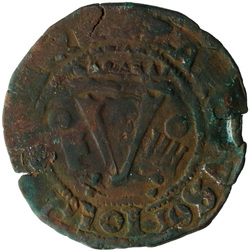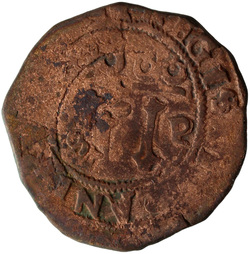 CAROLVS ET IOHANA REGES, Crowned "J"s intertwined with "F" to the left and value in roman numerals to the right.