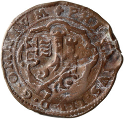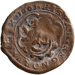 HISPAN REGNORVM REX 1601, Arms of Leon within an octolobe.
