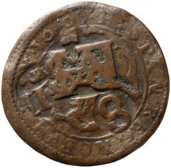 PHILIPPVS III D G OMNIVM, Arms of Castile within an octolobe.
