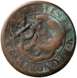 HISPAN REGNORVM REX 1602, Arms of Leon within an octolobe.