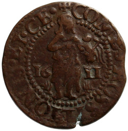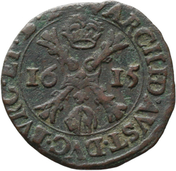 ARCHIDVCES AVST DVCES BV ET B, Shield enclosing star (Maastricht) over cross of Burgundy from which hangs the Golden Fleece, crown above, date either side (16 - 11); initial mark: star