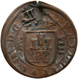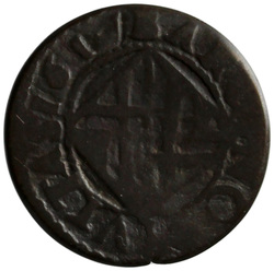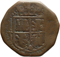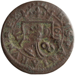 [ ]CHID AVST D[ ] BRAB Zc, Crowned sheild enclosing royal arms within a tressure of six arches